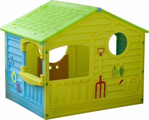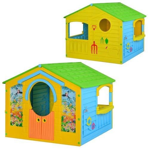 Игровой домик от компании Marian Plast выполнен в ярких цветах и собирается из пластмассовых деталей, которые украшены красочными картинками с изображением птичек и растений. Домик оснащен маленькой дверью и 3 окнами, через которые родители смогут наблюдать за игрой своих детей.