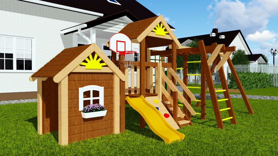 Детская площадка для малышей Baby Mark 6 – это мечта любого ребенка. Здесь есть и качели-гнездо, и горка, различные лестницы, скалолазка и самое главное домик! Такое время препровождения для детей точно не будет скучным, а наоборот полезным.