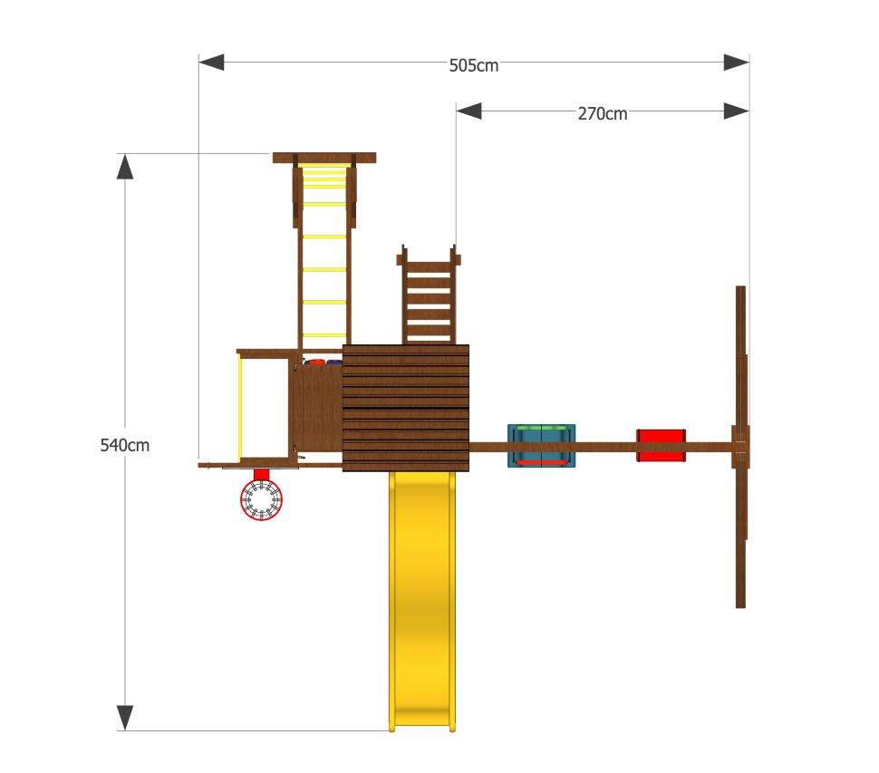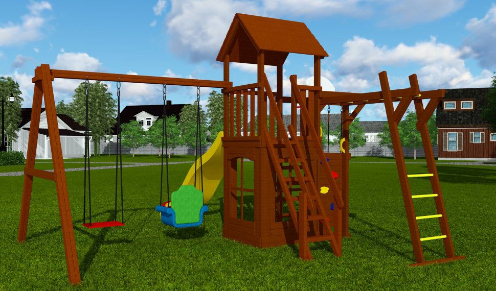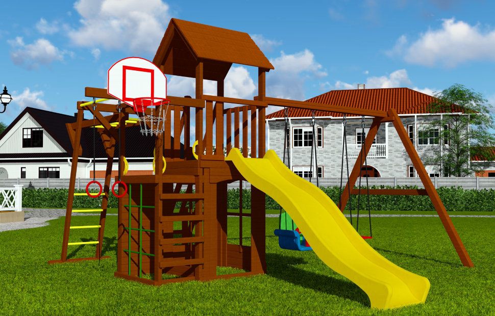Представленная площадка – истинное воплощение детской мечты! Купите этот игровой комплекс, и ваши дети будут c удовольствием проводить время на открытом воздухе. Комплекс полностью безопасен. Все элементы надежно скреплены. Отшлифовано и покрашено краской -пропиткой с эффектом «матовый лак».