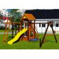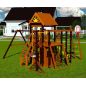 Детская площадка "Марк 6" спроектирована с учетом всех стандартов безопасности. Все несущие стойки выполнены из высококачественного клееного бруса, а прочие детали - из массива сосны. Обработка древесины производится методом опускания каждой заготовки в емкость с краской-пропиткой, благодаря чему повышается устойчивость площадки к уличным условиям и возрастает срок ее эксплуатации.