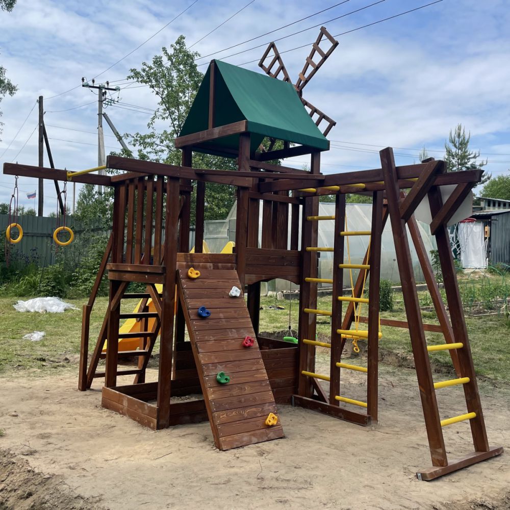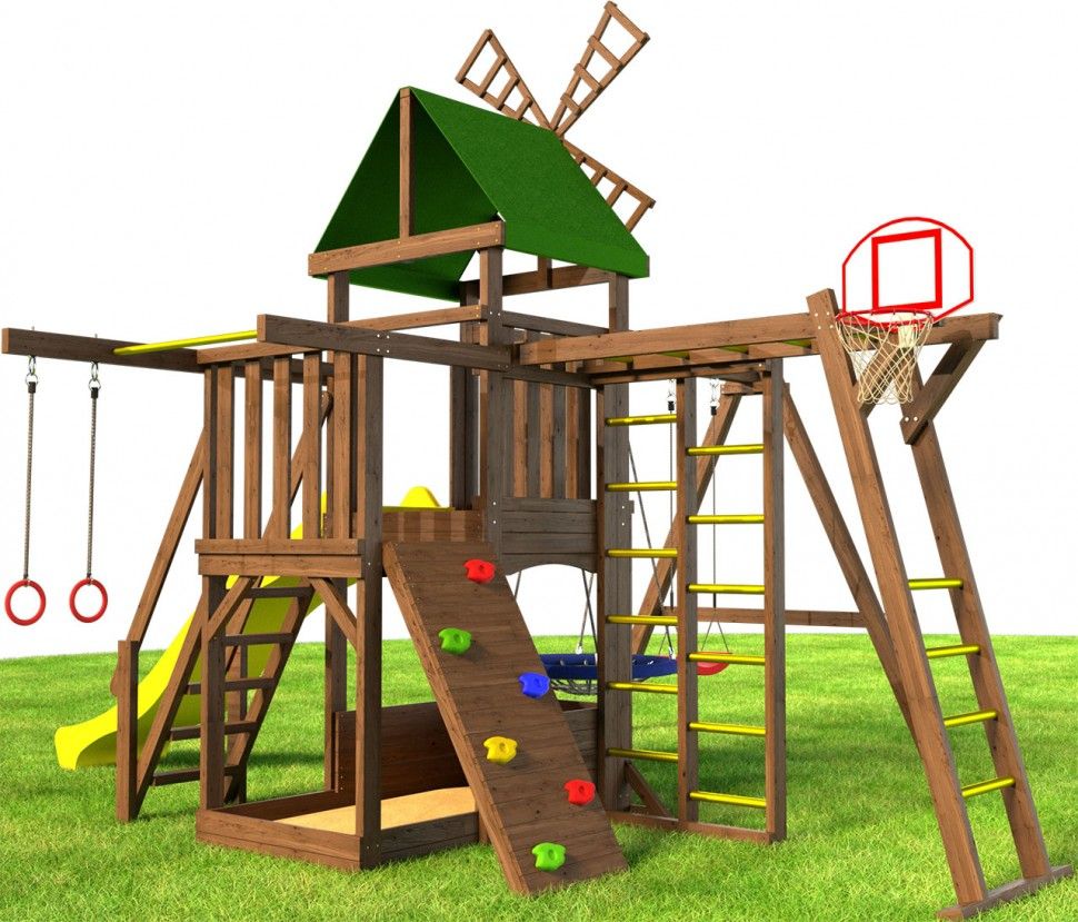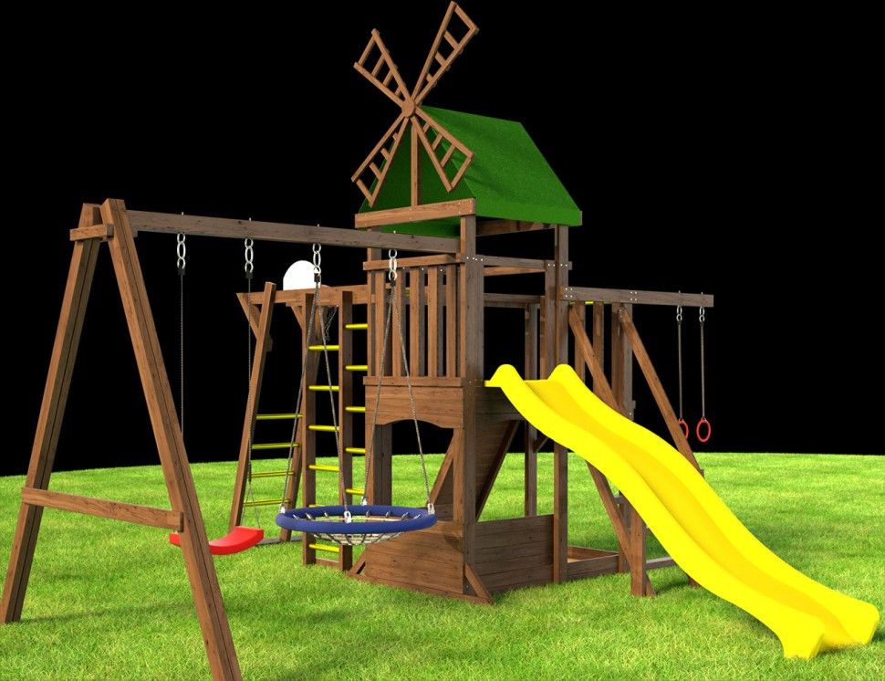 При разработке игровой площадки Мельница люкс было уделено большое внимание надежности материалов и креплений.