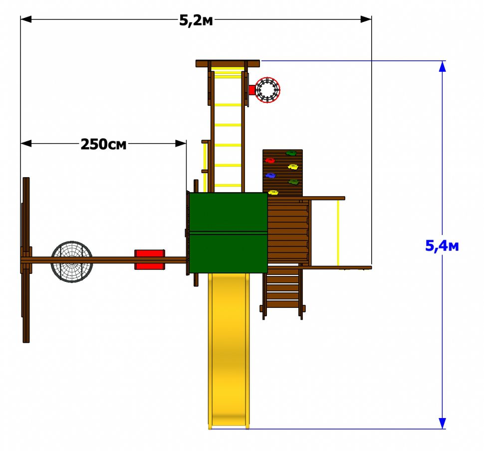 Спортивной составляющей уделено большое внимание. Конструкция оборудована шведской стенкой, гимнастическими кольцами, баскетбольным кольцом с сеткой, а также модулями «Турник» и «Рукоход».