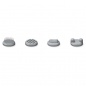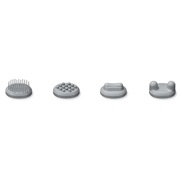 В комплект входит четыре насадки, с помощью которых вы можете получить разные виды массажа. Насадка-щетка обеспечивает интенсивный массаж кожи и поможет улучшить гемодинамику. Если вы испытываете телесное напряжение, Вам просто необходим глубокий точечный массаж с помощью узелковой или конусной насадки. Насадка с шишечками поможет снять болезненность в мышцах и ущемлениях.
