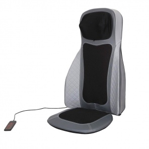 Накидка обеспечивает массаж шеи и спины в домашних условиях. В комплект поставки входит автомобильный переходник, благодаря которому устройство может работать от прикуривателя. Управлять процессом можно с помощью проводного пульта. Пользователь может выбрать один из четырех режимов (один для шеи и три для спины), активировать инфракрасный прогрев или задать интенсивность вращения роликов (два положения). Также есть таймер на отключение от 5 до 15 минут. Высоту рабочих головок для шейного отдела можно отрегулировать с помощью боковой поворотной рукоятки.