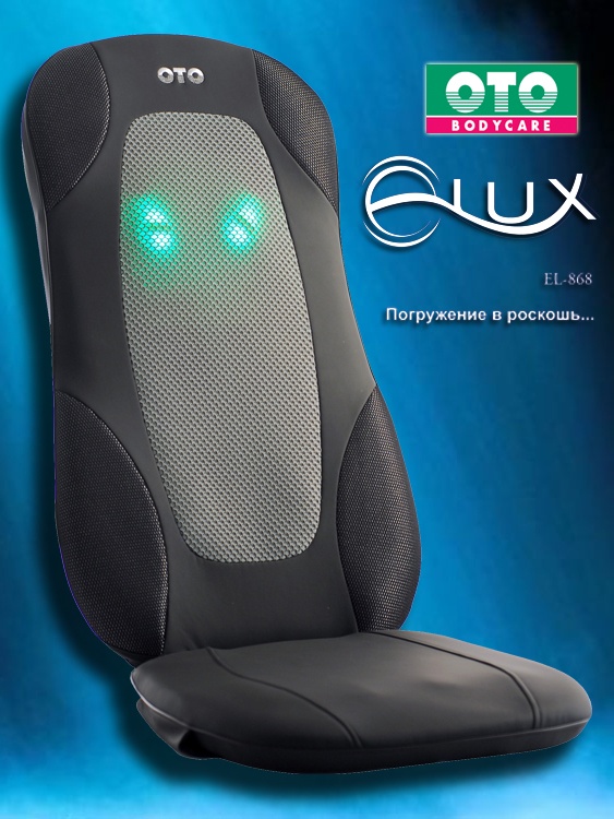 С помощью уникальных программ массажа, которые могут настраиваться согласно Вашим индивидуальным требованиям, массажная накидка OTO EL-868 обеспечивает глубокое воздействие на мышцы спины и полное расслабление, успокаивая нервы и улучшая ваше самочувствие. Благодаря эргономичным размерам и простоте размещения массажной накидки OTO E-Lux EL-868 на любом сидении, Вы сможете наслаждаться отличным массажем дома, в автомобиле или в офисе. Неоспоримым преимуществом при выборе именно этой массажной накидки является тот факт, что по мнению экспертов массажная накидка OTO E-Lux EL-868 признана лучшим товаром Сингапура для отдыха и здоровья.
