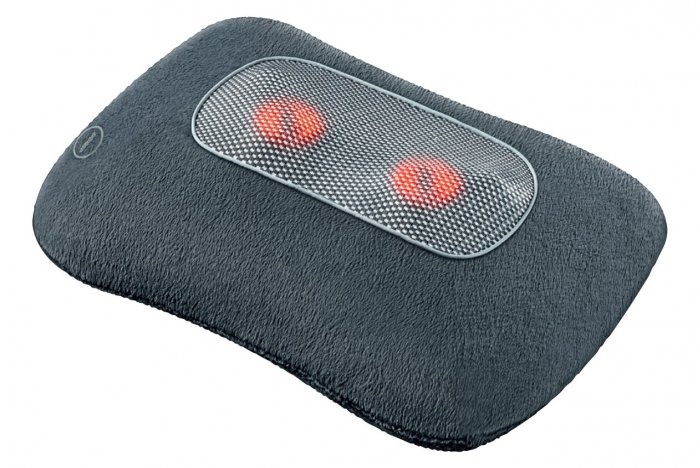 Компактная подушка с базовым функционалом оснащена двумя подвижными роликами, которые выполняют массаж по технике шиацу. Устройство работает от сети, что ограничивает его мобильность. Переходника для прикуривателя нет, поэтому использовать изделие в автомобиле нельзя. Также отсутствует ремень для фиксации на спинке стула.