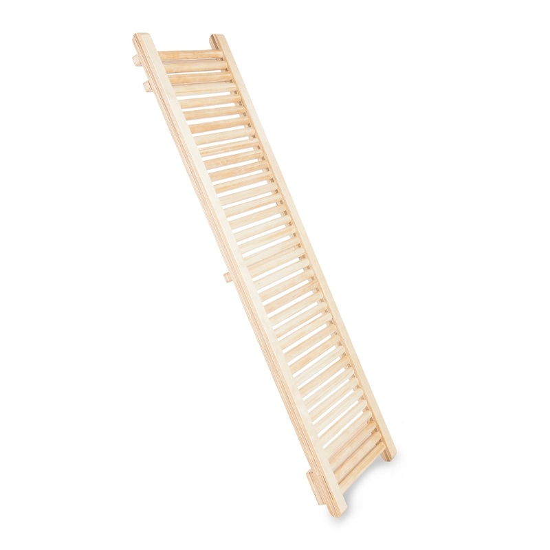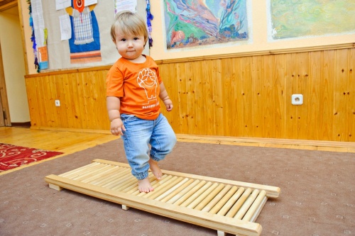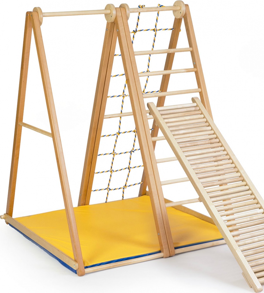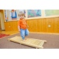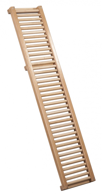 Массажная доска Kidwood представляет собой дополнительный снаряд, крепящийся к детскому комплексу. Доску можно разместить на полу и использовать как самостоятельный инструмент. Деревянные ролики массируют стопы, оказывая положительное влияние на внутренние органы ребенка. Деревянный каркас массажной доски отличается экологичностью, прочностью. Крепление к комплексу осуществляется посредством установки к перекладине. Угол наклона доски выбирается пользователем.