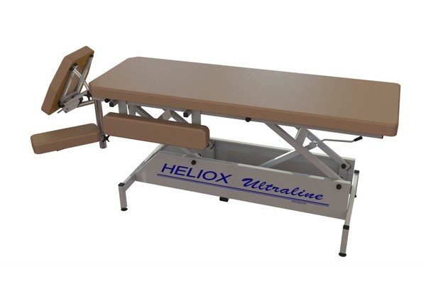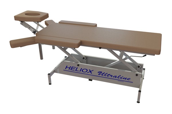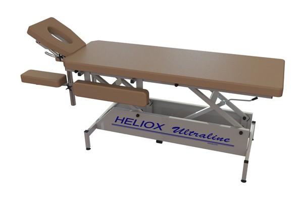 Массажный стол Heliox FM2 относится к типу стационарных. Разделен на две секции, головная секция регулируется механическим приводом.