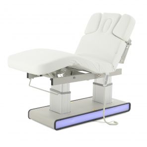 Подлокотники опускаются, обеспечивая свободный доступ специалисту. В головной секции стола расположено отверстие для лица, закрытое мягкой подушкой.