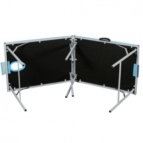 Стол имеет подголовник, угол наклона которого регулируется кнопочными фиксаторами. Полка для рук и подлокотники способствуют расслаблению и снятию нагрузки с плечевого пояса. Крепкий каркас выдерживает высокую динамическую нагрузку.