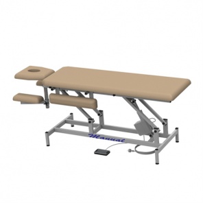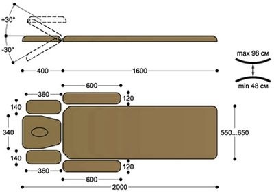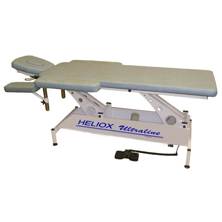 Массажный стол Heliox F1E2 состоит из двух секций. В головной секции расположен регулируемый подголовник и опоры для рук.