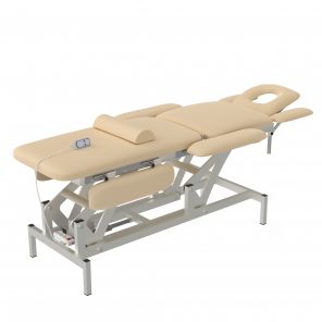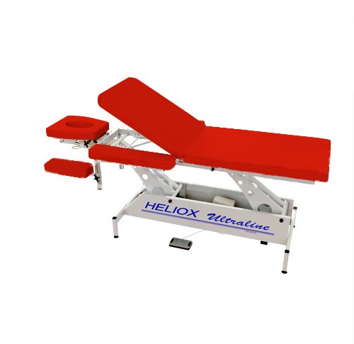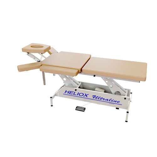 Массажный стол Heliox F1E3C оснащен мотором для регулирования положения ложа. Угол наклона головной и средней секций регулируется вручную.