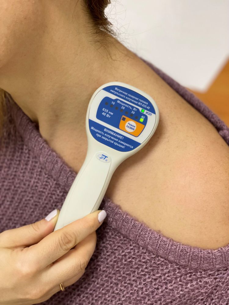 Представляет собой матрицу из 10 инфракрасных импульсных лазерных диодов с контролем мощности излучения. Мощность измеряется при закрытой защитной крышке. Значение мощности отображается на светодиодной шкале.