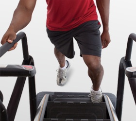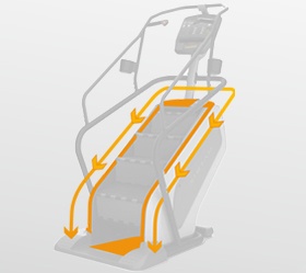 Применительно к степперам лестничного типа, биомеханика скорее подразумевает связку "удобство использования + безопасность". Во-первых, размеры лестницы оптимизированы для пользователей практически любой комплекции. Даже если ноги "растут от ушей", рабочей зоны будет достаточно для комфортного использования на любых скоростях. Во-вторых, расположение рукояток и поручней максимально удобно, и, что очень важно, дает ощущение устойчивости на тренажере. В-третьих, во время подготовки к старту или паузы движение ступеней блокируется. Блокировка также происходит в случае, если пользователь сошел с лестницы или в проемы ступеней попал инородный предмет (шнурок от обуви, к примеру).