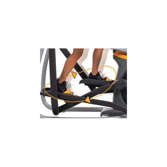 Программная часть эллипсоида E7XE VA релиза 2012 г. заслуживает доверие пользователей своим расширенным функционалом. С русифицированной навигацией легко справиться даже начинающим, сенсорные датчики сердечного ритма фиксируют медицинскую точность измерений, а консоль оборудована многоцветным сенсорным дисплеем с диагональю 15 дюймов. Подключение мультимедийных и мобильных девайсов, реализация уникальной фирменной технологии Виртуального ландшафта (не имеющая аналогов в мире) лишают занятия монотонности.