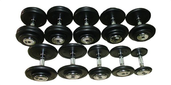 Гантельный ряд 10 пар обрезиненный. Хромированные рукоятки с удобным нескользящим хватом.