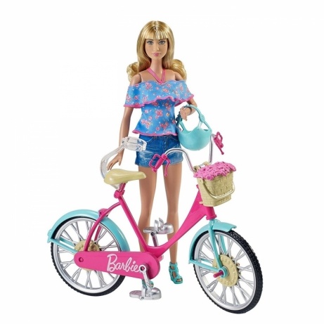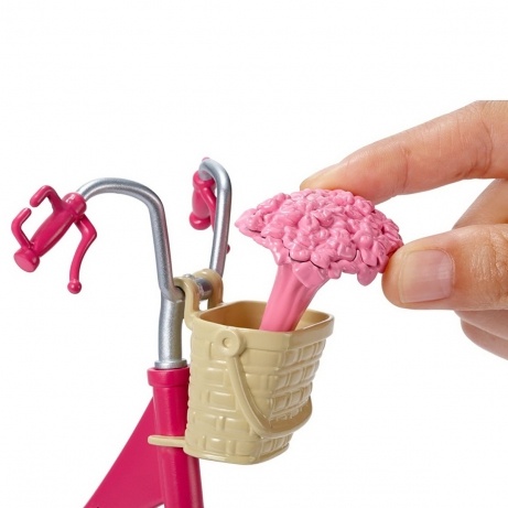 Твоя кукла Barbie тщательно следит за собой и обожает заниматься спортом, тогда ее порадует стильный розовый велосипед, на котором она сможет отправится за продуктами или другими покупками, а также приятно провести время в процессе велопрогулки в парке или за городом.