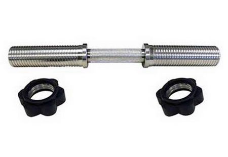Гриф гантельный MB Barbell MB-BarM50-M490B изготовлен из стали (марка 45), с нанесением комплексного гальванического покрытия из никеля и хрома. В качестве замка используется гайка стальная, для удобного использования, покрыта резиной и имеет ширину 30 мм. Рифленая ручка вращается. Диаметр посадочного места 50 мм, что соответствуе Олимпийскому стандарту. Гриф позволяет использовать любой набор дисков разного веса не превышающий в сумме 150 кг.