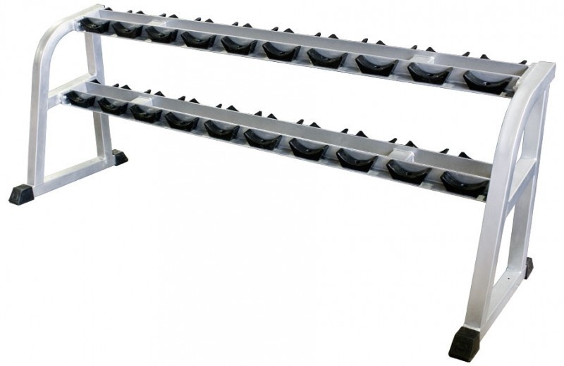 Стойка предназначена для хранения 10 пар профессиональных гантелей. Несущая конструкция - профиль прямоугольного сечения 60 мм x 60 мм x 2 мм.