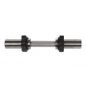 Гриф гантельный MB Barbell MB-BarM50-M390B изготовлен из стали (марка 45), с нанесением комплексного гальванического покрытия из никеля и хрома. В качестве замка используется гайка стальная, для удобного использования, покрыта резиной и имеет ширину 30 мм. Рифленая ручка вращается. Диаметр посадочного места 50 мм, что соответствуе Олимпийскому стандарту. Гриф позволяет использовать любой набор дисков разного веса не превышающий в сумме 150 кг.