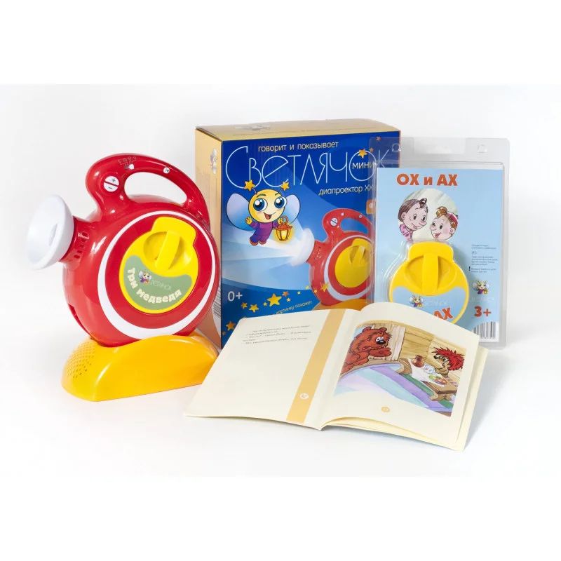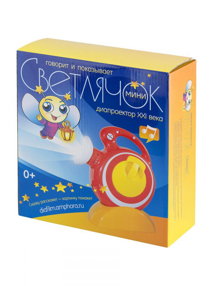 Мини диапроектор Светлячок обязательно порадует Вас и Вашего малыша. Он обеспечит тихий и интересный вечер, ведь просмотр диафильма завораживает и оставляет неповторимое впечатление. Теперь можно устраивать тихие семейные вечера за просмотром старых добрых сказок. Огромное количество сказочных персонажей ждут встречи и желают поведать свою историю. Диапроектор компактен и имеет устойчивую подставку, в которую встроен динамик. Его можно носить в руках, ведь для этого имеется специальная ручка и включить там, где встретиться белая стена и темный уголок, ведь аппарат работает на батарейках и не требует подсоединения к сети. Светлячок обладает очень удобной функцией - он может показывать диафильмы в автоматическом режиме, воспроизводя слайд за слайдом, а по завершению выключиться. К нему подходят абсолютно все картриджи фирмы Светлячок, диафильмы на пленках к данному диапроектору не подходят.