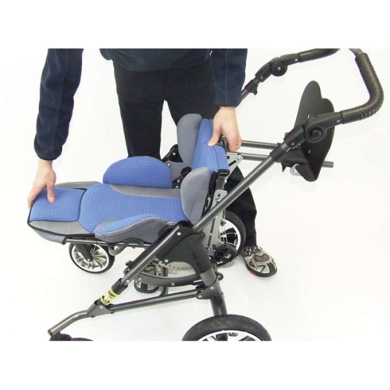 Конструкция коляски позволяет легко складывать ее, сиденье и задние колеса снимаются. Это обеспечивает удобное хранение и транспортировку. Съемная мягкая обивка в области спины, сиденья, боковых бортов и головы. Можно регулировать угол наклона сиденья до 45 градусов.