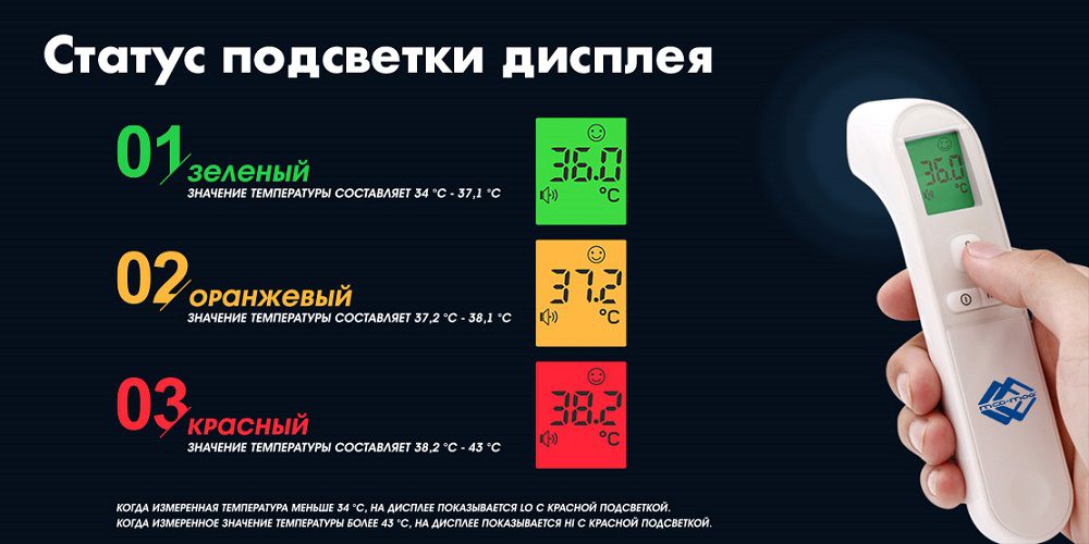 С помощью данного термометра можно измерить температуру не только ребенка, но и взрослого человека. Нажатием на одну кнопку изменяется режим и с помощью термометра можно измерить температуру любых окружающих предметов. Измерение температуры тела без непосредственного контакта с кожей (34°C - 42.2°C). Точность измерения 0.2°C с шагом 0.1 °C. Настраиваемое звуковое оповещение, когда значение температуры превышает заданный предел. Измеряет температуру поверхности от 10°C до 40°C. Возможность сохранения 9 последних измеренных значений.