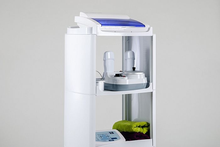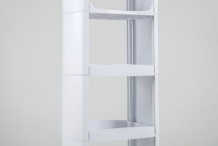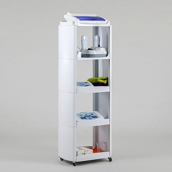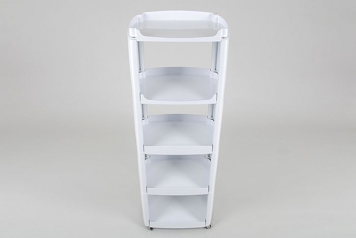 Тележка косметолога SD-978E оснащена пятью вместительными полками с ограничителями, которые позволяют разместить большое количество инструментов и аксессуаров. На верхней полке предусмотрен держатель для установки лампы-лупы, а прорезиненные колеса обеспечивают мобильность тележки. Модель изготовлена из металла и легкого пластика.