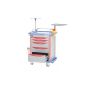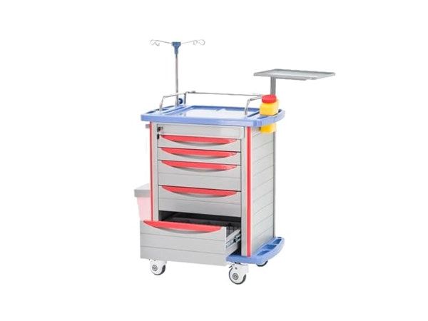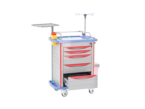 Столик-тележка медицинский BLQ-002 предназначен для оснащения палат стационара, хирургических и анестезиологических кабинетов для размещения и хранения лекарственных препаратов и медицинских инструментов. Каркасные стойки тумбового отделения изготовлены из анодированного алюминиевого сплава высокой прочности. Заполнение каркаса– профильные рейки из ABS пластика, прочного и устойчивого к обработке дезинфицирующими средствами. Столик-тележка оснащен 5-ю выдвижными ящиками из прочного ABS пластика, которые закрываются центральным замковым устройством. Ящики на телескопических направляющих полного выдвижения из прочной оцинкованной стали.