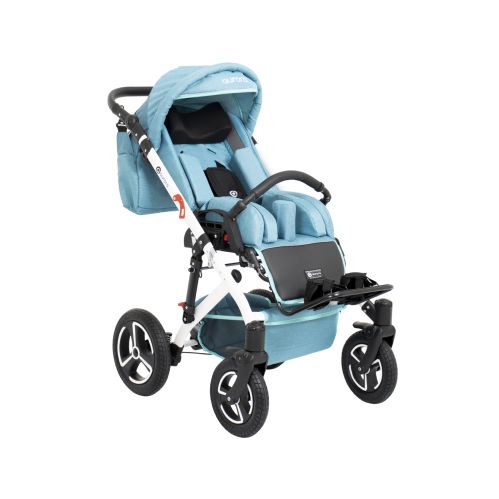 Сиденье оснащено функцией «Положение полулежа», которая позволяет плавно регулировать угол наклона. Кроме того, можно регулировать высоту подголовника, наклон спинки и подставку для ног. Для обеспечения надлежащей боковой стабилизации используются подушки, которые сужают сиденье, и регулируемые боковые пелоты. Двухступенчатая рама с амортизацией идеально подходит для длительных прогулок. Все эти функции делают коляску идеальной для маленьких пациентов с ограниченными возможностями опорно-двигательного апарата.