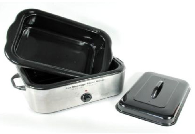 Электрический нагреватель на 110 камней. Состоит из корпуса, изготовленного из нержавеющей стали, емкости для камней и крышки. Разогревает базальтовые камни для стоунтерапии до 78°. Температуру нагрева можно регулировать.