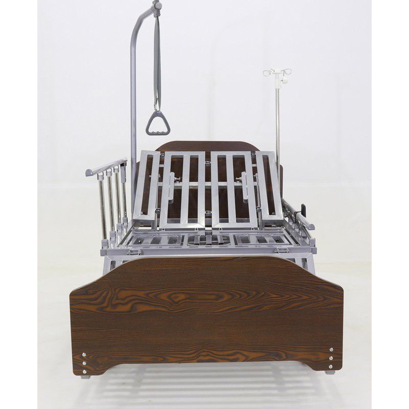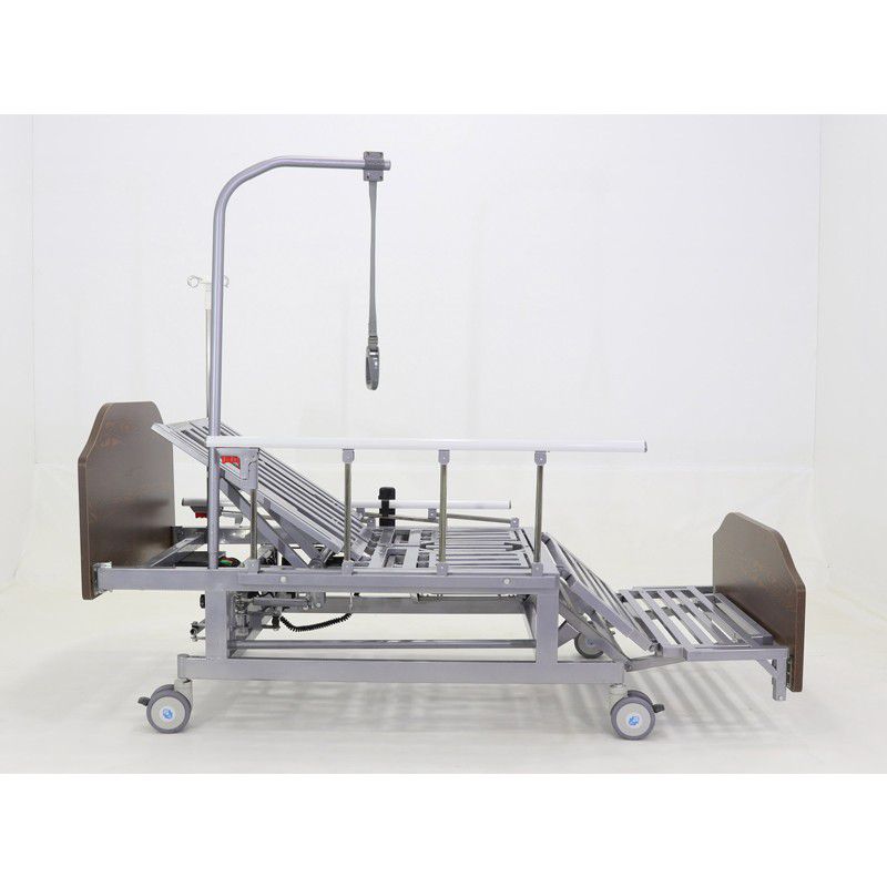 Ложе кровати состоит из нескольких секций, часть которых регулируется. Туалетное устройство легко снимается и моется. В комплект входит инфузионная стойка, устройство для подтягивания, матрас и столик. Функция кардио-кресло позволяет пользователю принимать удобное положение сидя. Больного можно переворачивать с одного бока на другой, для профилактики образования пролежней.