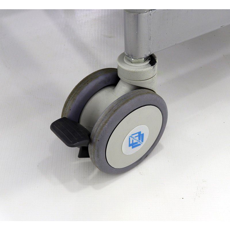 Ложе, каркас и боковые ограждения кровати выполнены из стали. Торцы сделаны из ламинированного ДСП. Оборудование выдерживает нагрузку до 180 кг. Ложе состоит из 10 секций, головная и спинная регулируются до 85 градусов по углу наклона, тазобедренная до 25. Управление функциями кровати производится посредством пульта. Есть программирование бокового переворачивания на 30 и 45 минут. Колеса самоориентирующиеся, оснащены тормозами.