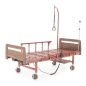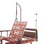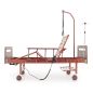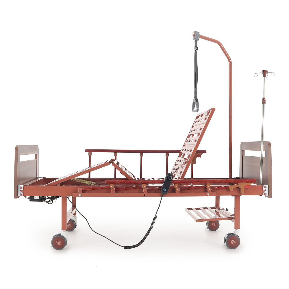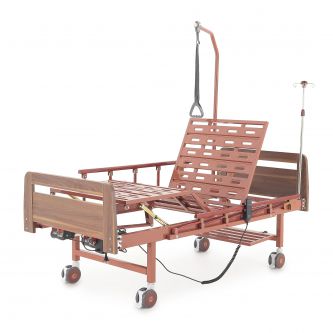 Медицинская кровать предназначена для больных, которым требуется длительный постельный режим. Может использоваться в стационарах медицинских учреждений, гериатрических пансионатах, в домашних условиях. Главное преимущество модели - использование электропривода. Благодаря ему регулировать наклон головной и ножной секции гораздо проще, для этого не требуется физических усилий, пациент сможет сделать это сам с помощью специального пульта. Наличие колес позволит использовать кровать вместо каталки. Вместе с тем модель не оборудована туалетным устройством и механизмом для переворота больного. В комплект поставки входят также инфузионная стойка и штанга, с помощью которой пациент сможет подтянуться и сесть.