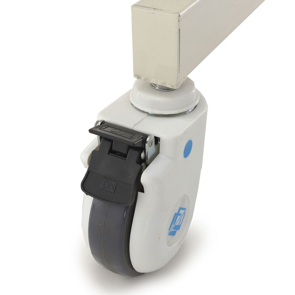 Самонаправляющиеся колеса обеспечивают быструю и легкую транспортировку, если в этом возникнет необходимость, а индивидуальные тормоза — ее безопасность.