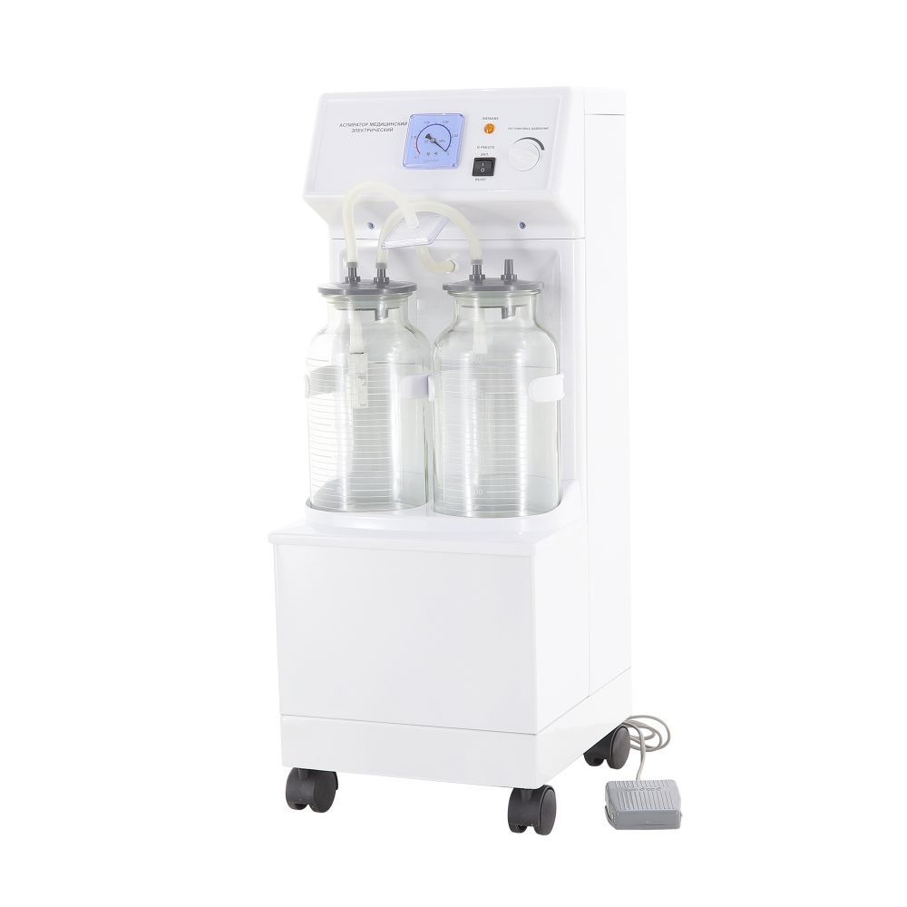 Электрический аспиратор H001 - мощная модель, которую используют в реанимационных, гинекологических, имплантологических и других отделениях. Благодаря колесам передвинуть аппарат получится без особых усилий.