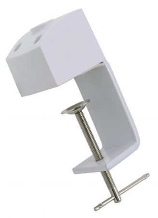 Крепление типа струбцина – это запчасть к настольным светильникам производства Мед-Мос разных модификаций. С его помощью кронштейн лампы фиксируется на краю стола, на полке или другой поверхности.