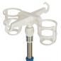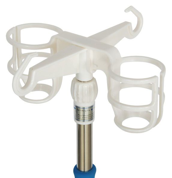 Трансфузионная стойка ММ-101Н имеет диаметр крестовины 40 см, что делает ее устойчивой. Она оснащена колесами диаметром по 4 см каждый. Высоту стойки можно регулировать в диапазоне 117-205 см. Изделие имеет два крючка для закрепления капельниц, а также два удобных держателя для инфузионных флаконов. Кроме того, есть также стакан, выполненный из небьющегося пластика, который позволит сразу же сливать остатки раствора. Максимально допустимая нагрузка составляет 2,5 килограмма. Вес конструкции – 4,8 килограмм. Стойка не имеет особых требований по уходу. Материал, из которого она выполнена, устойчив к влаге и обработке средствами дезинфекции. Поэтому, вы сможете с легкостью поддерживать ее в чистоте и порядке.