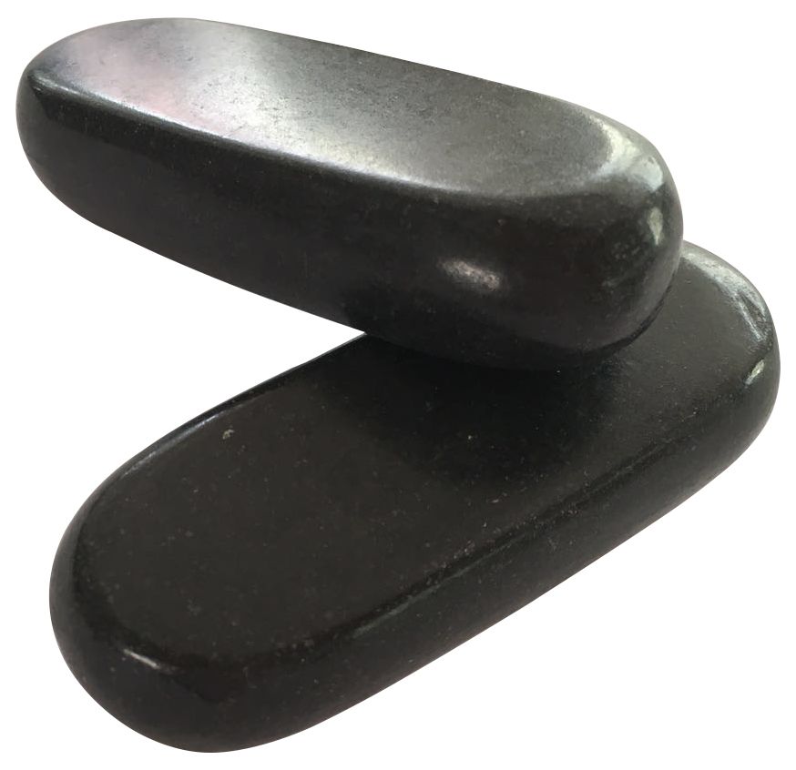В набор два камня, сделанные из натурального материала – базальта. Он позволяет хорошо отдавать тепло телу человека. При этом, базальтовые камни достаточно быстро прогреваются, что сократит время подготовки к процедуре. Разогреть их до нужной температуры поможет специальный прибор – подогреватель камней.