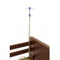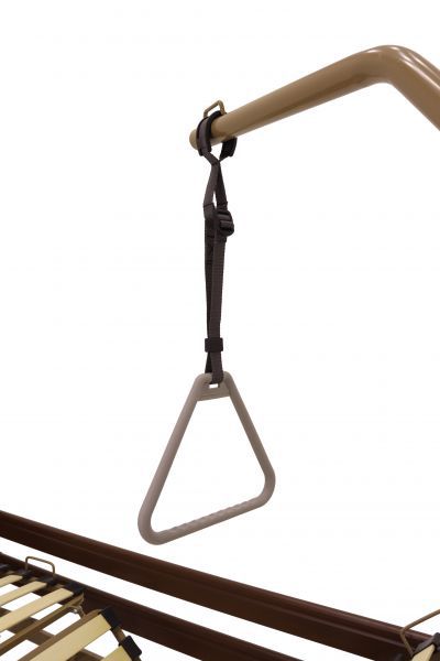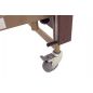 Деревянное ложе, выполненное из высокопрочных выпуклых ламелей, имеет ширину 90 см, а торцевые спинки изготовлены из массива бука с облицовкой ЛДСП. Такой дизайн придаёт кровати эстетичный и современный внешний вид, гармонично вписываясь в интерьер любого лечебного заведения.