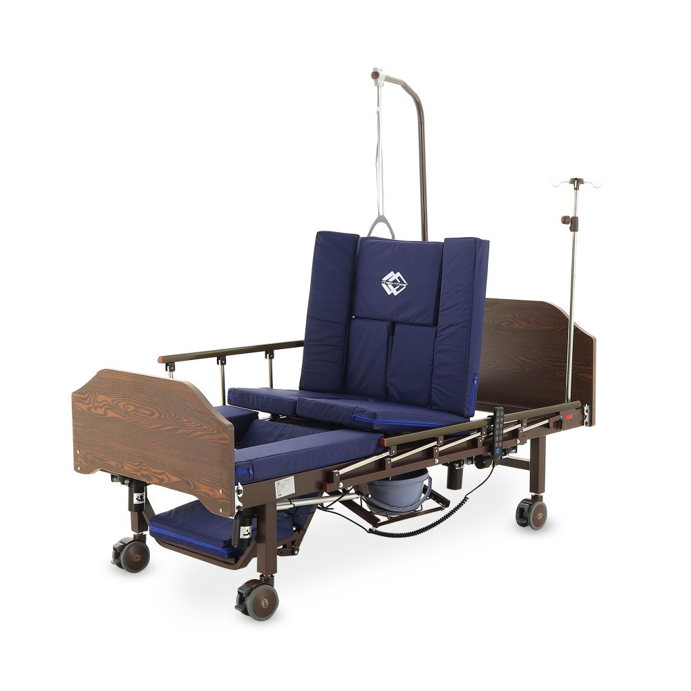 Современная медицинская кровать, которая может использоваться как в стационаре, так и в домашних условиях. Ее функционал обеспечивает пациенту комфорт, а людям, которые его обслуживают - облегчает работу. Благодаря электроприводу больной сможет сам поднимать и опускать подголовье и секцию для ног, переводя себя из лежачего в сидячее положение. Помощь со стороны для этого не потребуется. Модель также имеет функцию бокового переворота, родственникам или медикам не придется переворачивать пациента вручную, чтобы уберечь его от пролежней. Модель также комплектуется туалетным устройством дугой для подтягиваний, стойкой для капельниц. Благодаря колесам модель способна заменить каталку.