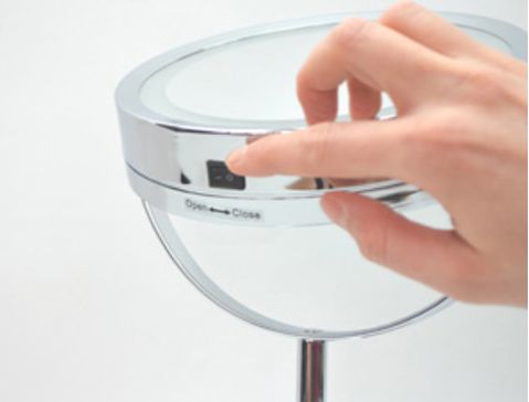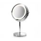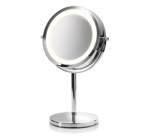 Зеркало косметическое с подсветкой Medisana CM 840 двустороннее. Одна сторона увеличивает отражение пятикратно, вторая — без увеличения. Диаметр зеркала 13 см.