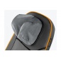 Массажная накидка удобно фиксируется на стуле или офисном кресле с помощью эластичного ремня. Сам процесс имитирует точечное воздействие по технике шиацу с помощью подвижных роликов. При этом высота шейных валиков регулируется с помощью боковой ручки. Дополнительно есть функция ИК-прогрева. Адаптера для прикуривателя нет, поэтому использовать устройство в машине не получится.