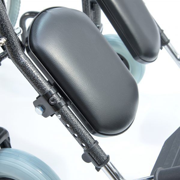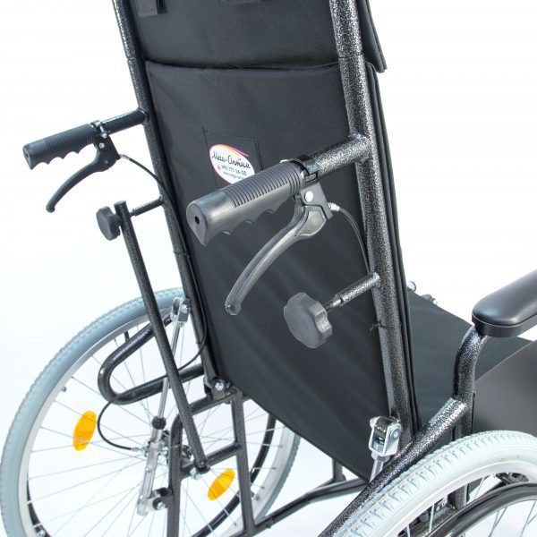 Складывается и раскладывается без инструмента. Снабжена слева и справа рычагами стояночного тормоза, перемещением рычага можно осуществлять торможение кресла-коляски до полного блокирования.