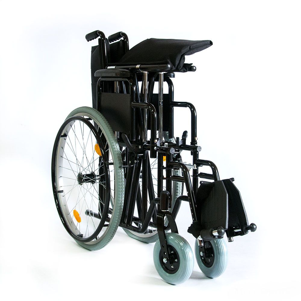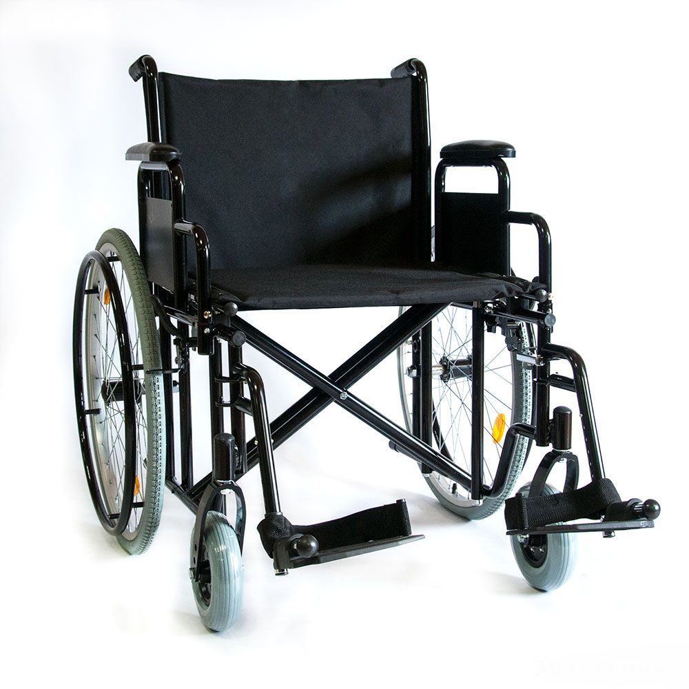 Инвалидная кресло-коляска предназначена для людей с большой массой тела. Данная модель представлена в трех вариациях — с эффективной шириной сиденья 54, 59 и 64 см, что дает возможность подобрать необходимую модификацию в соответствии с нуждами любого пользователя и клиента. Сиденье и спинка кресла-коляски сделаны из прочной ткани, способной выдерживать большие нагрузки. Еще одной важной особенностью конструкции является увеличенный диаметр несущей оси задних колес, которая сделана из специального высокопрочного сплава. Колеса данной коляски оснащены пневматическими шинами из износоустойчивой резины.