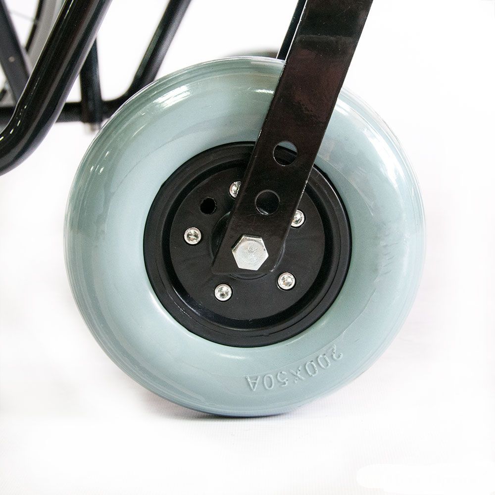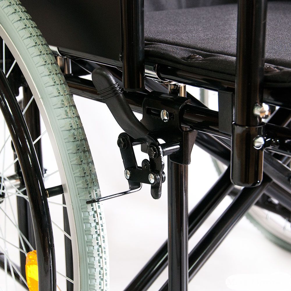 Несущие элементы и рама кресла-коляски модели сконструированы таким образом, чтобы обеспечить повышенную грузоподъемность и длительную безопасную эксплуатацию. Рама кресла-коляски выполнена из высокопрочной стали с лакокрасочным покрытием, которое защищает от коррозии и облегчает санитарную обработку. Важной особенностью кресла-коляски является особая конструкция рамы — ее складная часть состоит из двойной крестовины, которая позволяет равномерно распределить нагрузку на несущие элементы конструкции. Отметим, что конструктивной особенностью данной кресло-коляски является возможность регулировки высоты крепления задних и передних колес, что дает возможность настроить кресло-коляску для пользователей разного роста. Также данная функция позволяет отрегулировать угол наклона сиденья коляски, что обеспечивает больший комфорт при эксплуатации.