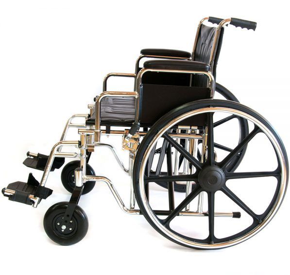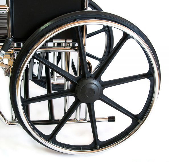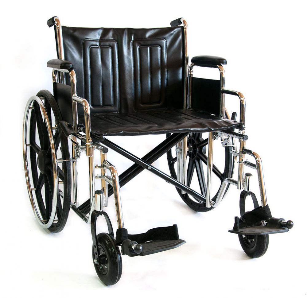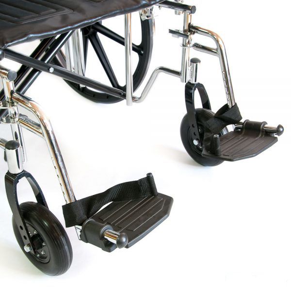 Инвалидная кресло-коляска предназначена для людей с большой массой тела. Сиденье и спинка кресла-коляски сделаны из высокопрочной искусственной кожи, способной выдерживать большие нагрузки. Еще одной важной особенностью конструкции является увеличенный диаметр несущей оси задних колес, которая сделана из специального высокопрочного сплава. Колеса данной коляски оснащены усиленными цельнолитыми шинами из износоустойчивой резины, не оставляющей следов на полу.