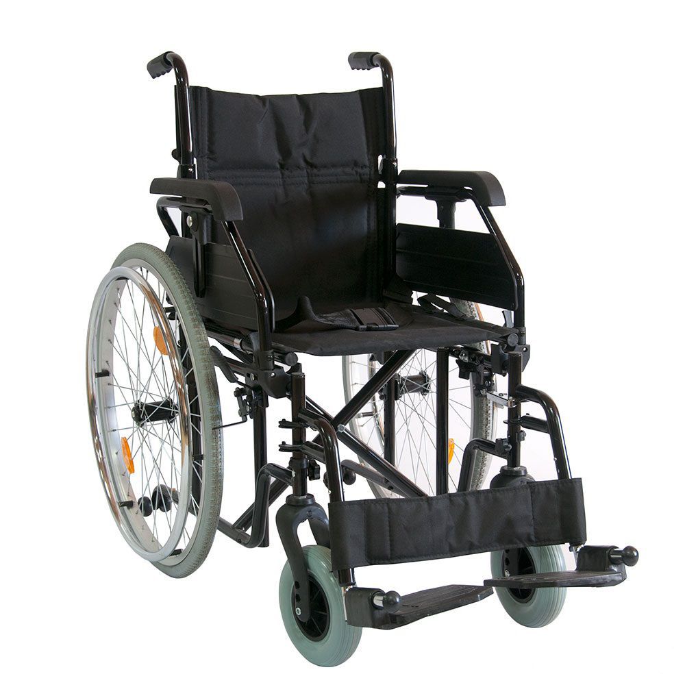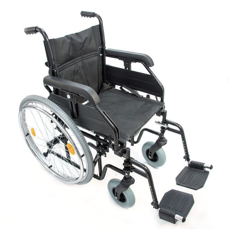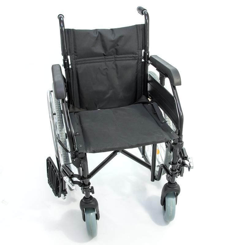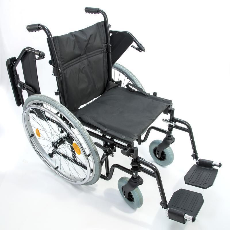 Кресло-коляска инвалидное с ручным приводом предназначена для передвижения больных и инвалидов с частичной потерей функций опорно-двигательного аппарата в условиях помещений и на площадках с твёрдым покрытием как самостоятельно, так и с помощью сопровождающего лица. Кресло-коляска имеет складную поршневую конструкцию по вертикальной оси. Рама коляски стальная с полимерным покрытием.
