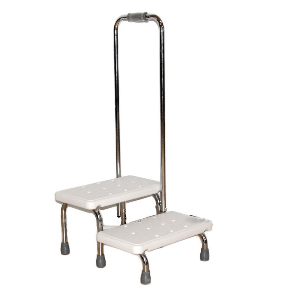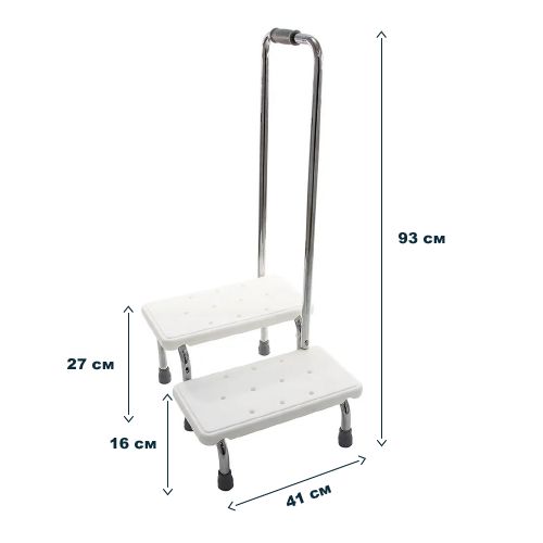 Отличное приспособление! На поручне есть специальная накладка, руке удобно. Ножки не скользят. Ступени тоже не скользкие!