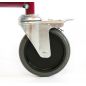 Кресло имеет съемные элементы - подножки, подлокотники, сидение и спинка. Все элементы легко моются, пригодны для дезинфицирующей обработки. Стальной каркас устройства покрыт полимерным составом, защищающим изделие от внешних воздействий и образования коррозии. Наличие колес упрощает передвижение пациента внутри помещений.